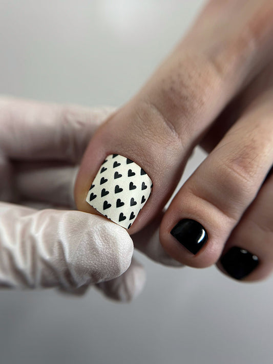 SPECIAL PRICE FOR YOUR COUNTRYPedicure Black Hearts. Milky Background. Nail wrap WR-726