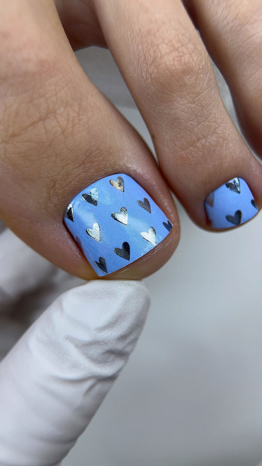 Pedicure Blue Hearts. Colored Foil. Nail wraps WR-550