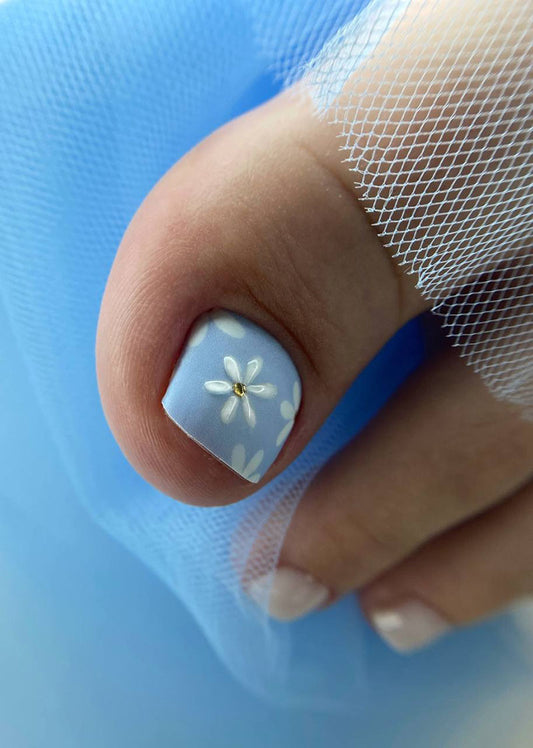 Pedicure Chamomile. Blue. Foil gold. Large. Nail wrap WB-830