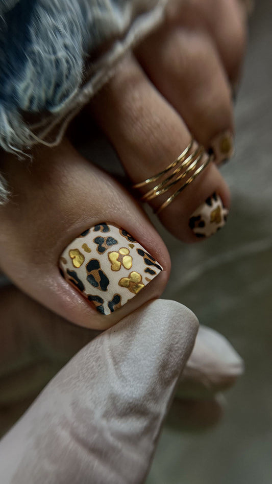 Pedicure Brown Leo. Gold Foil. Large. Nail wrap WB-741