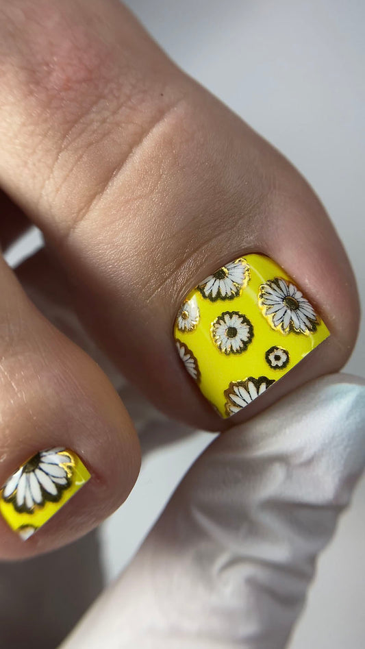 Pedicure Chamomile with outline. Foil gold. Large. Nail wrap WB-773