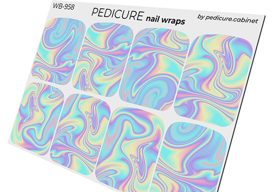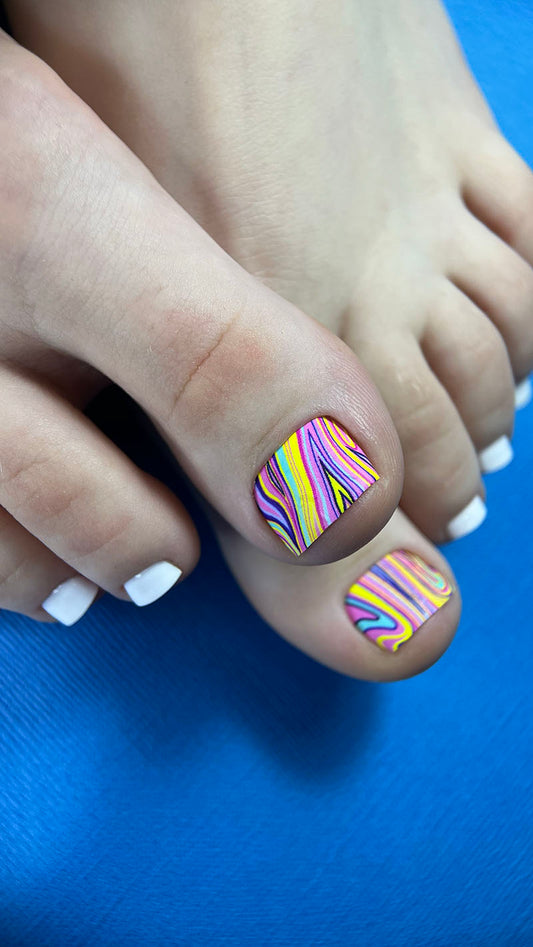 Pedicure Divorces. Blue yellow lilac. Large. Nail wrap WB-958