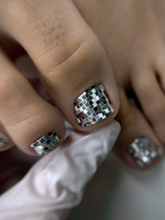 Pedicure Disco Ball. Foil silver. Nail wrap WR-604
