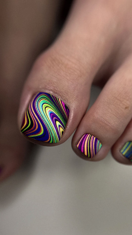 Pedicure Divorces with yellow and purple. Nail wrap WR-840