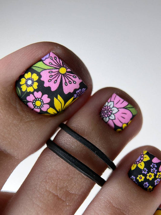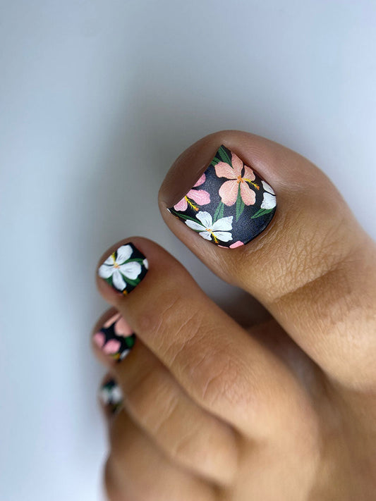 Pedicure Flowers Black Background. Nail wrap WR-760