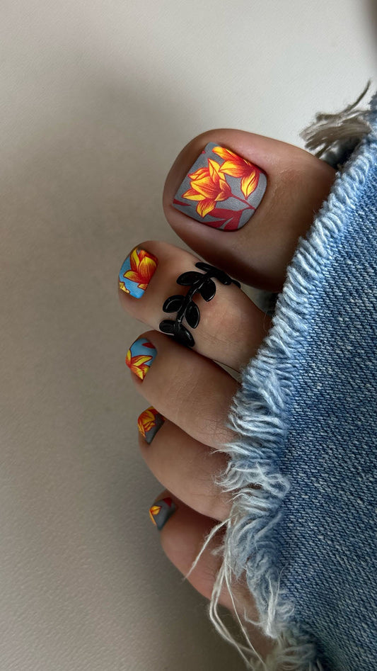 SPECIAL PRICE FOR YOUR COUNTRYPedicure Flowers. Gray background. Nail wrap WR-848