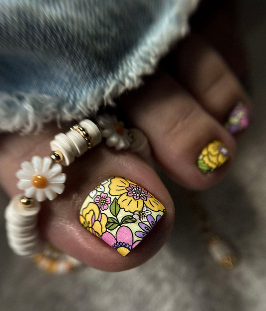Pedicure Flowers on a light green background. Nail wrap WR-758