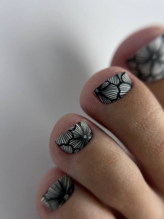 Pedicure Flowers. Black and white. Nail wrap WR-807