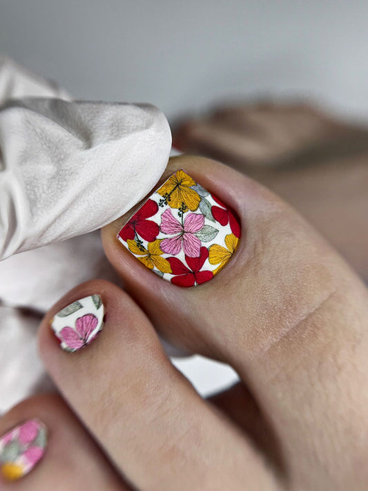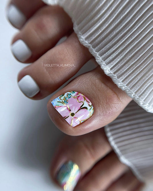 Pedicure Flowers. Watercolor. Foil gold. Large. Nail wrap WB-849
