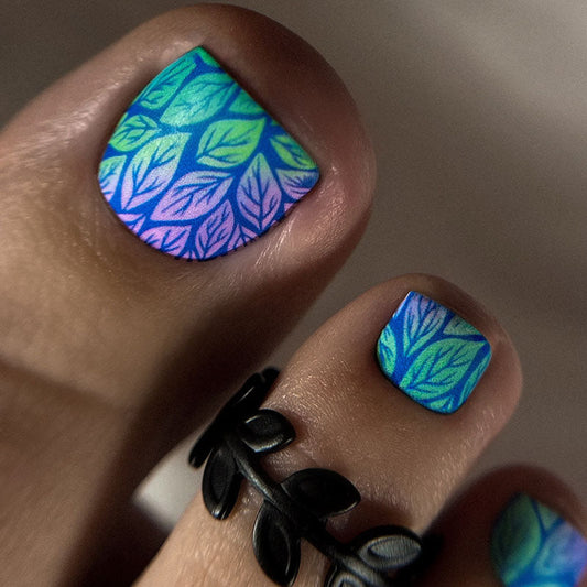 Pedicure Gradient Leaves. Two Backgrounds. Large. Nail wrap WB-700