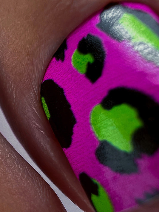 Pedicure Leo large. Pink green. Large. Nail wrap WB-955