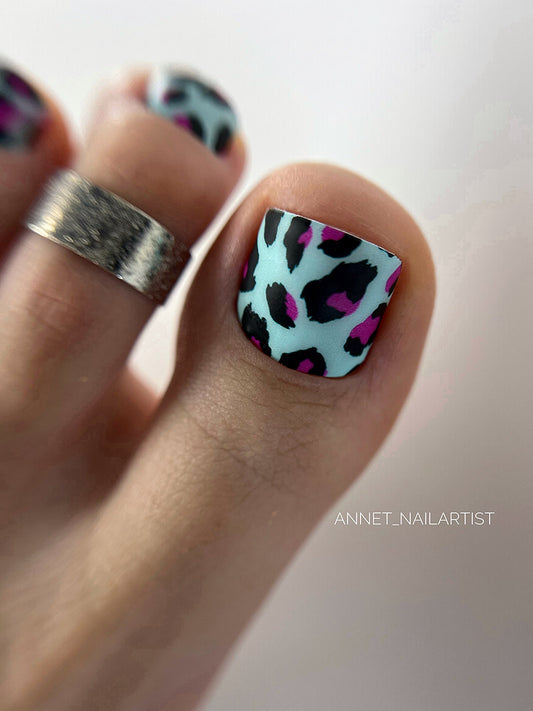 Pedicure Leo large. Blue pink. Nail wrap WR-998