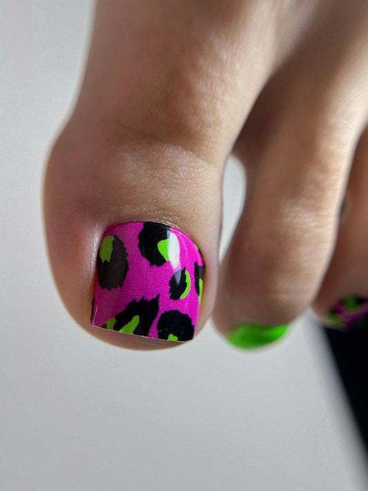Pedicure Leo large. Pink green. Nail wrap WR-996