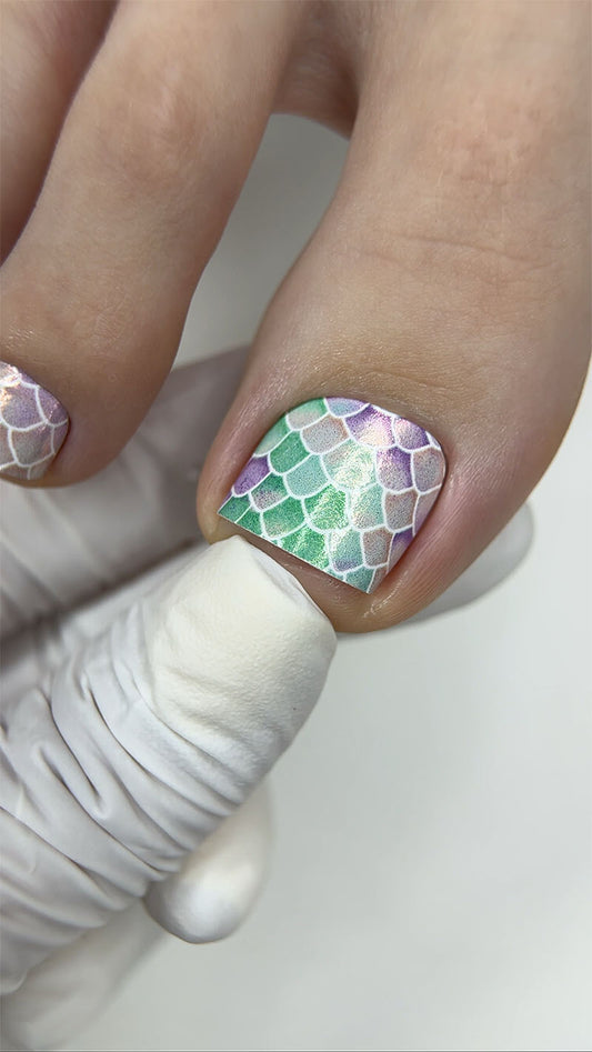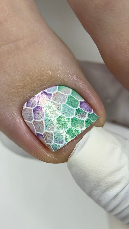 Pedicure Mermaid. Lilac and Green. Colored Foil. Nail wraps WR-511