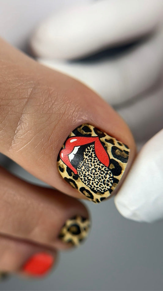 Pedicure Lips. Leopard Tongue. Nail wrap WR-688