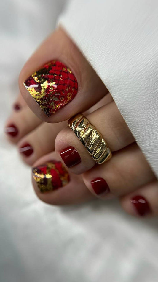 Pedicure Python. Red. Foil gold. Large. Nail wrap WB-928