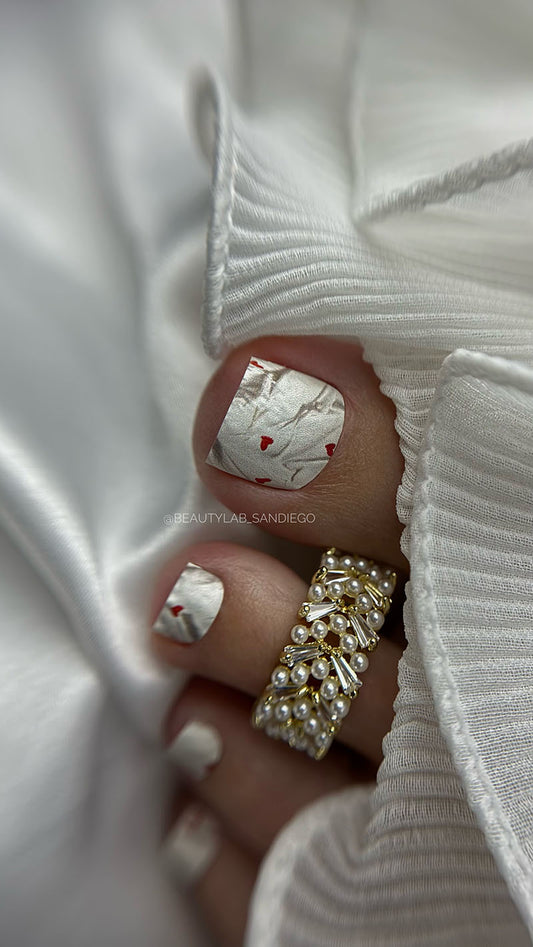 Pedicure Red Hearts. Textured Background. Nail wrap WR-680