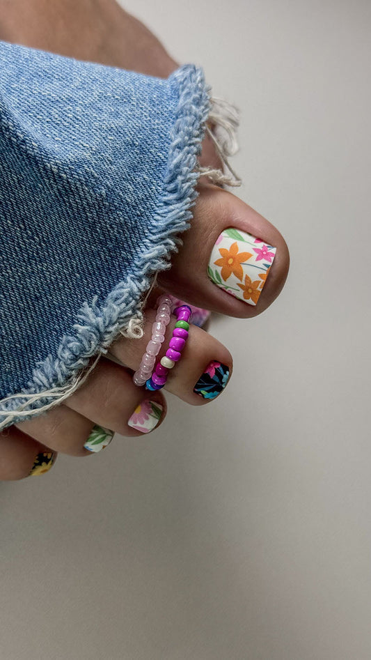 Pedicure Small Flowers. Black and White Background. Nail wrap WR-636