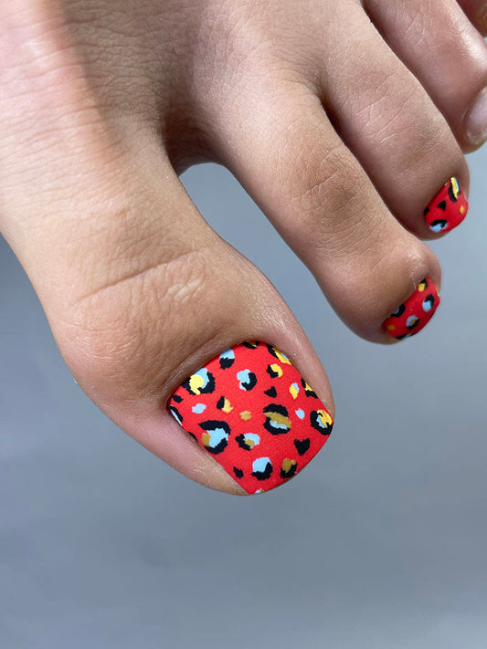 Pedicure Red Leo. Gold Foil. Large. Nail wrap WB-721