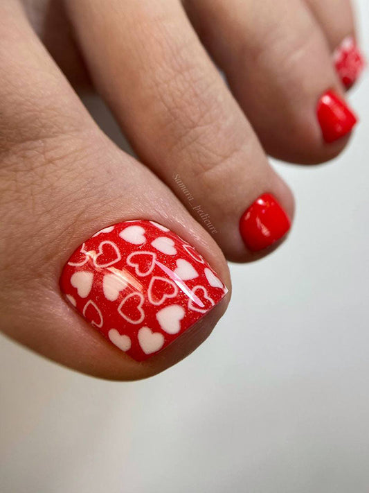 Pedicure Hearts. Red and white. Large. Nail water decals SR-156