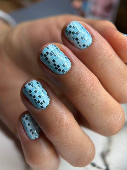 Manicure Strawberry. Blue Checkered. Colored Foil. Nail wraps WM-491