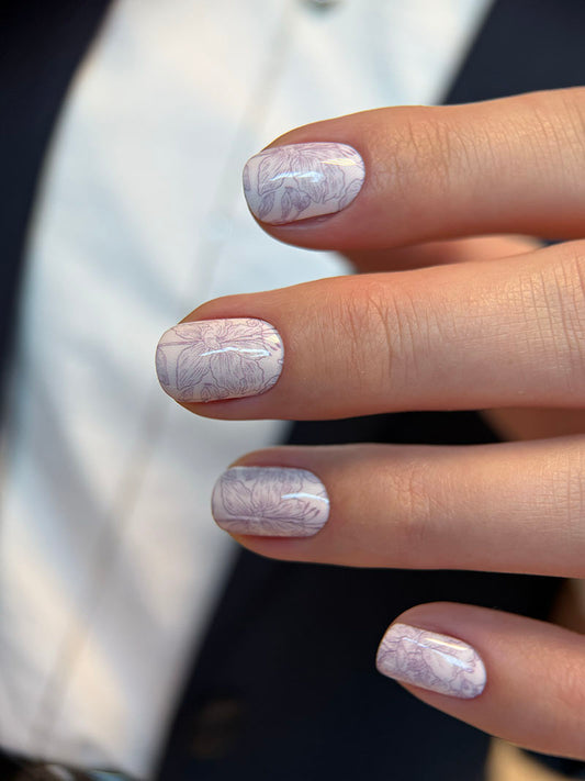 Manicure Dusty Lilac Flowers. Nail wraps WM-537