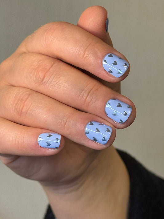 Manicure Blue Hearts. Colored Foil. Nail wraps WM-551