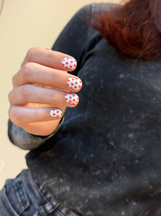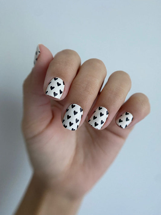 Manicure Black Hearts. Milky Background. Nail wrap WM-722