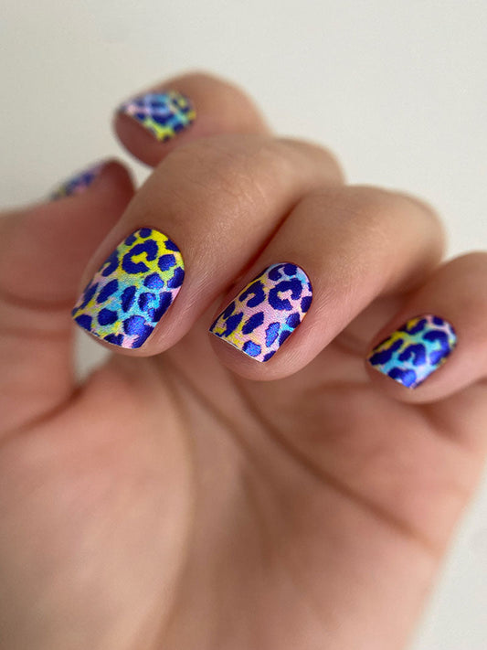 Manicure Leo Blue and Strokes. Colored Foil. Nail wraps WM-477