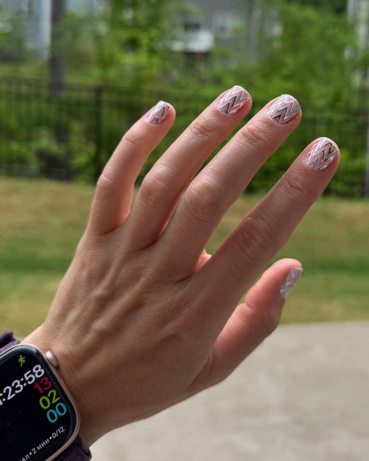 Manicure Zigzag. Foil silver. Nail wrap WM-618
