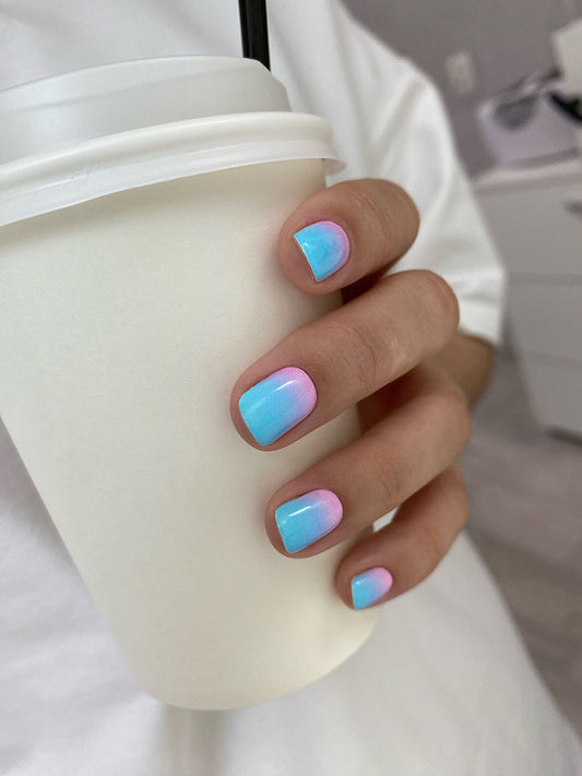 Manicure Gradient. Pink and blue. Nail wrap WM-795