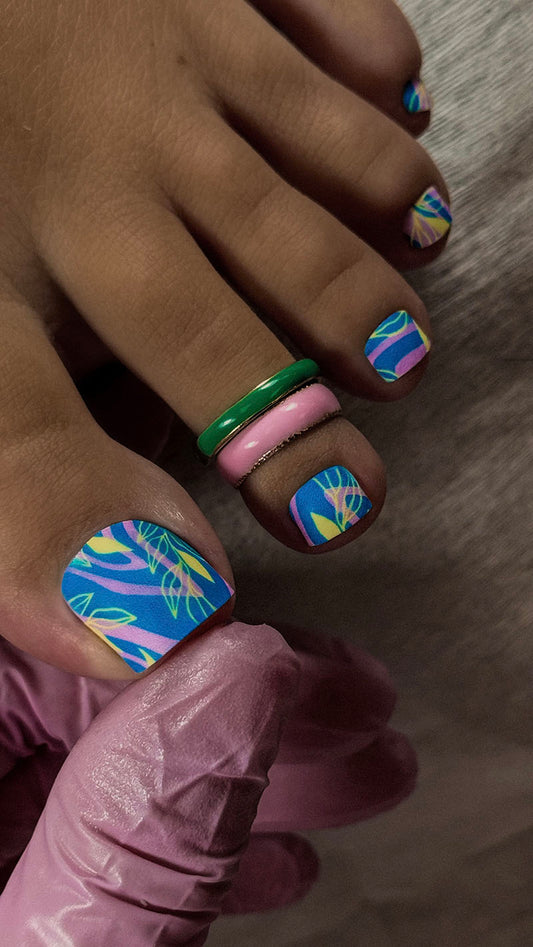 Pedicure Leaves. Gradient and Pink. Nail wrap WR-633