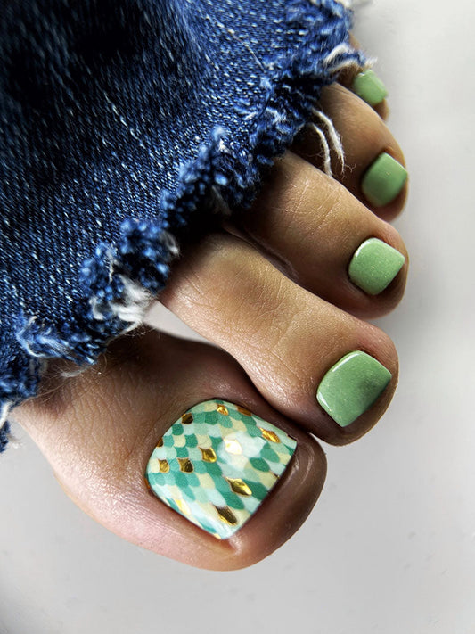 SPECIAL PRICE FOR YOUR COUNTRYPedicure Python beige and green. Foil gold. Large. Nail wrap WB-774
