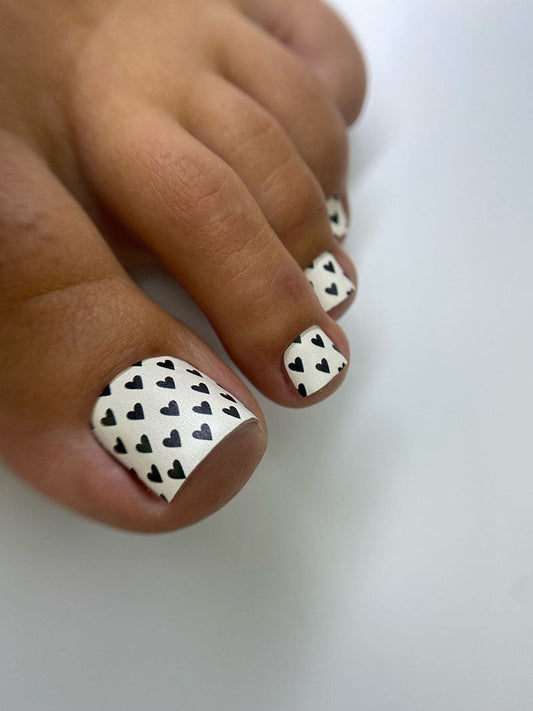 SPECIAL PRICE FOR YOUR COUNTRYPedicure Black Hearts. Milky Background. Nail wrap WR-726