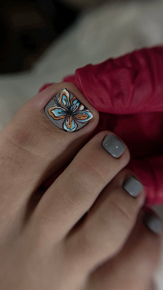SPECIAL PRICE FOR YOUR COUNTRYPedicure Flowers. Gray background. Nail wrap WR-848