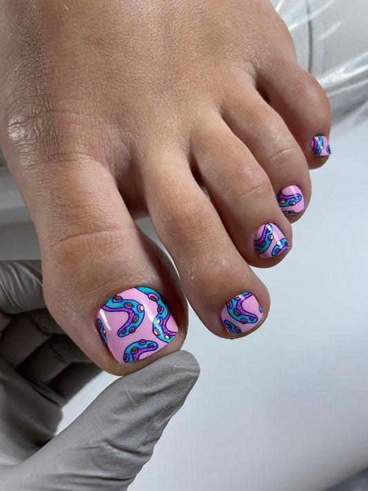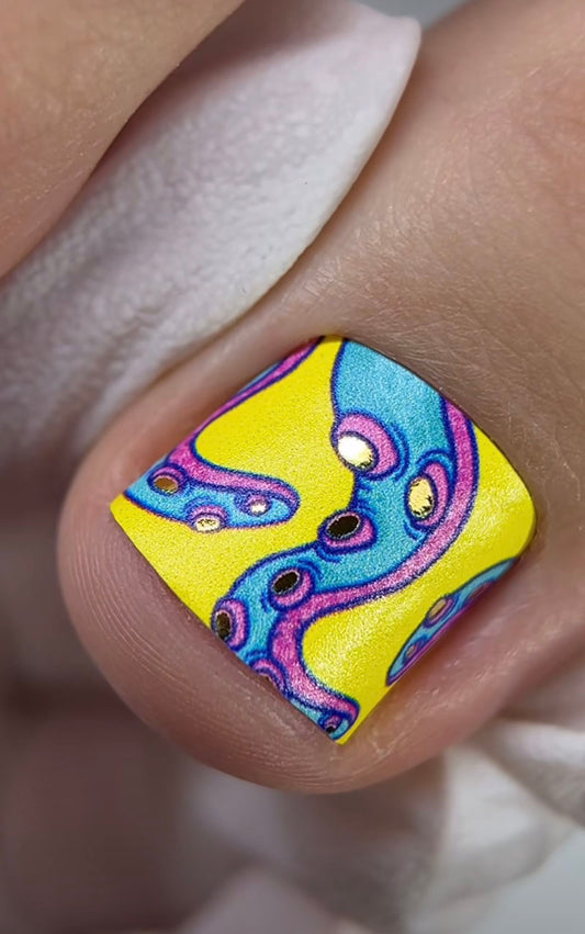 SPECIAL PRICE FOR YOUR COUNTRYPedicure Tentacles. Pink and yellow. Foil gold. Large. Nail wrap WB-776