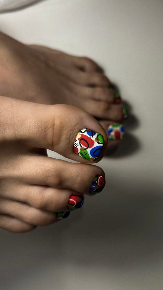 SPECIAL PRICE FOR YOUR COUNTRYPedicure Green red blue. Two backgrounds. Foil gold circles. Large. Nail wrap WB-864
