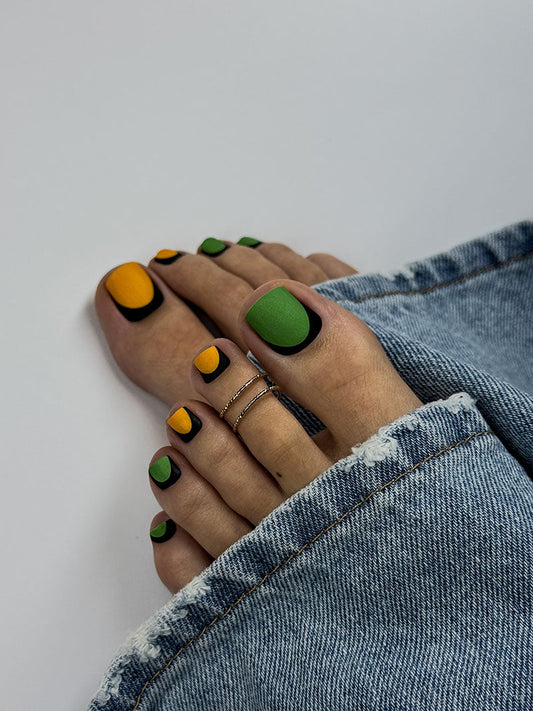 SPECIAL PRICE FOR YOUR COUNTRYPedicure Reverse French. Mustard and Green. Nail wrap WR-635