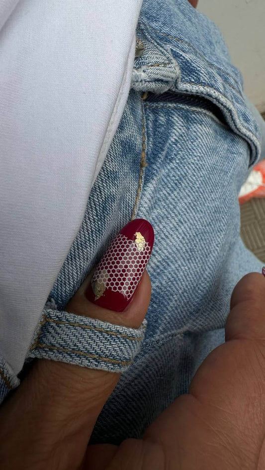 Manicure Houndstooth. Foil gold. Nail water decals SF-106