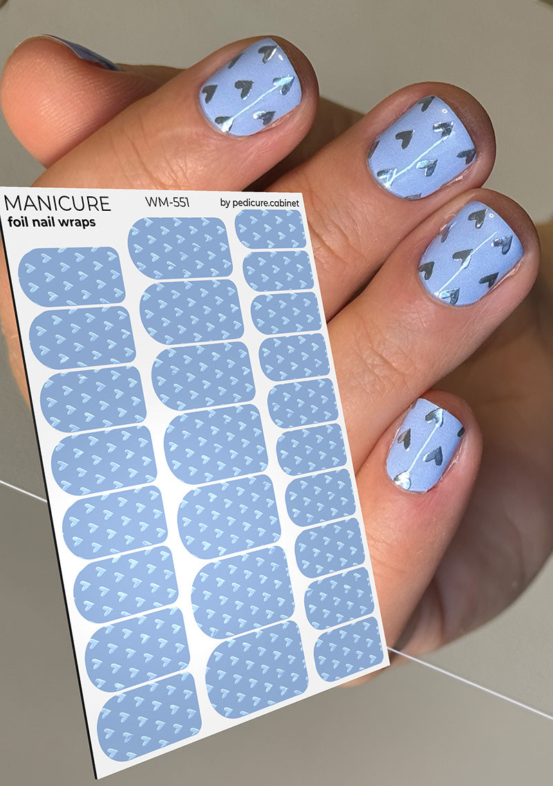 Manicure Blue Hearts. Colored Foil. Nail wraps WM-551
