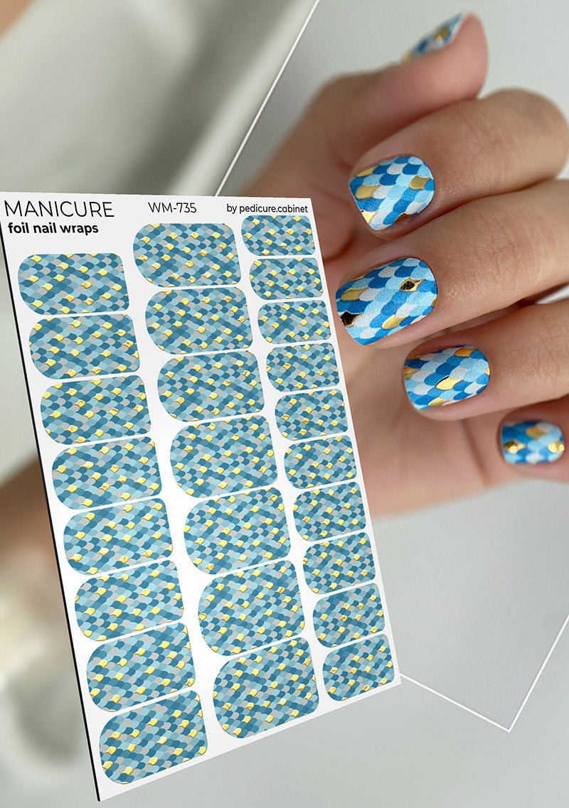 Manicure Blue Python. Gold Foil. Nail wrap WM-735