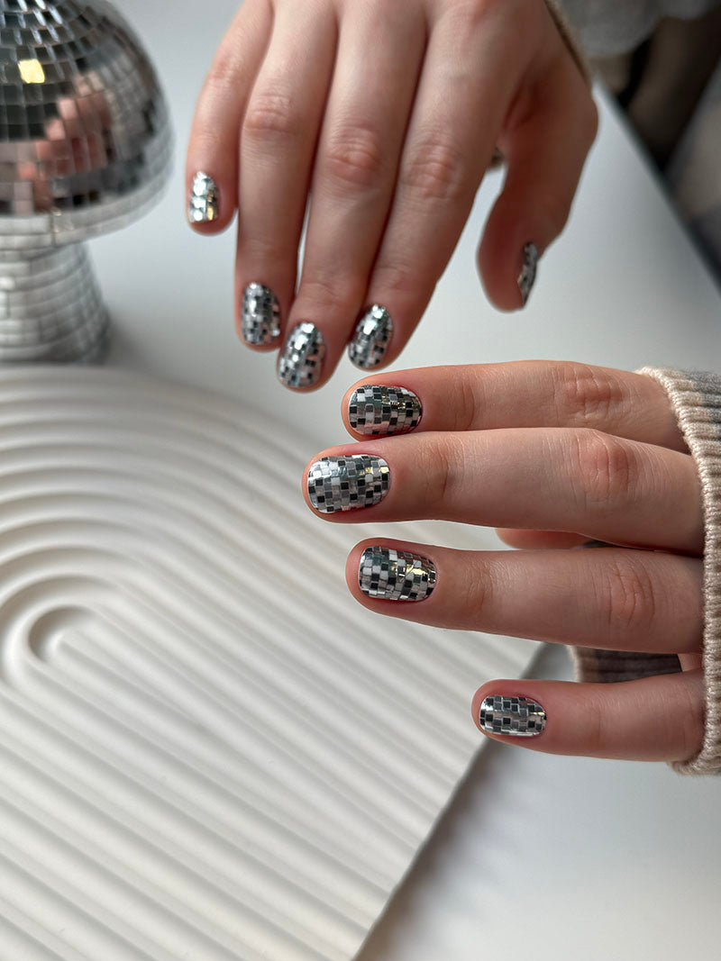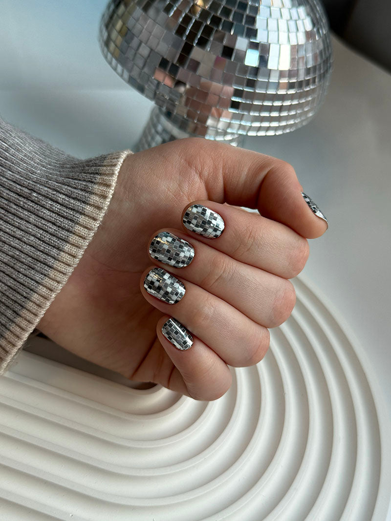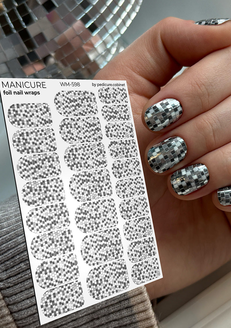 Manicure Disco Ball. Silver Foil. Nail wraps WM-598