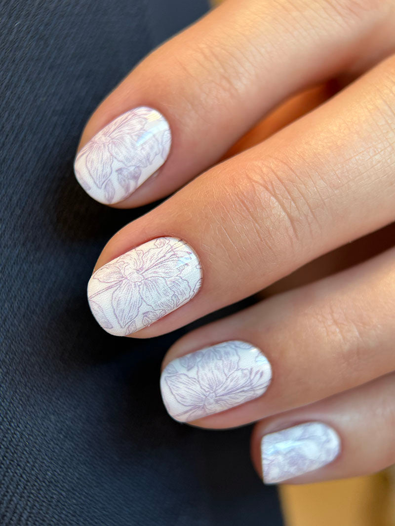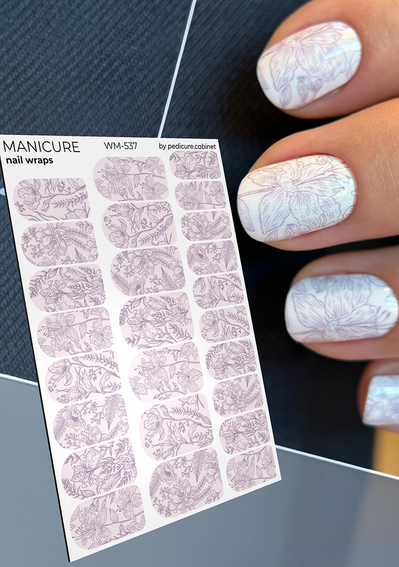 Manicure Dusty Lilac Flowers. Nail wraps WM-537