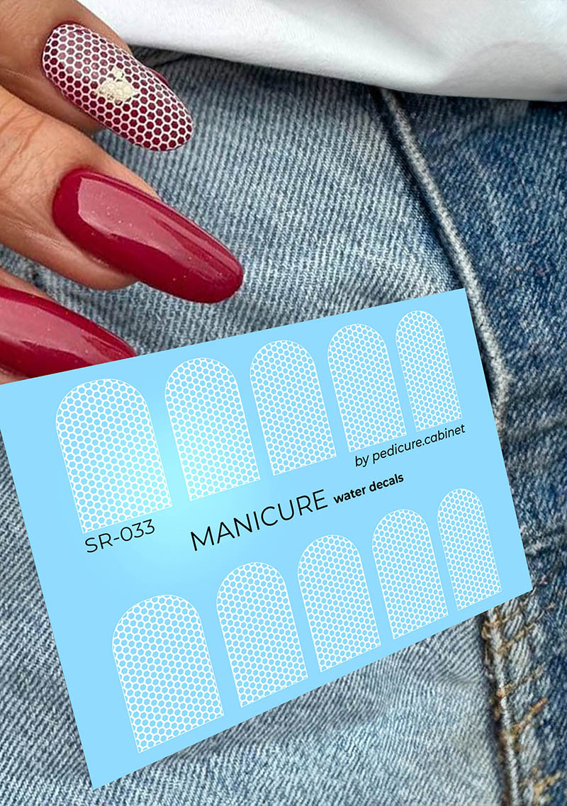 Manicure Grid. White. Nail water decals SR-033