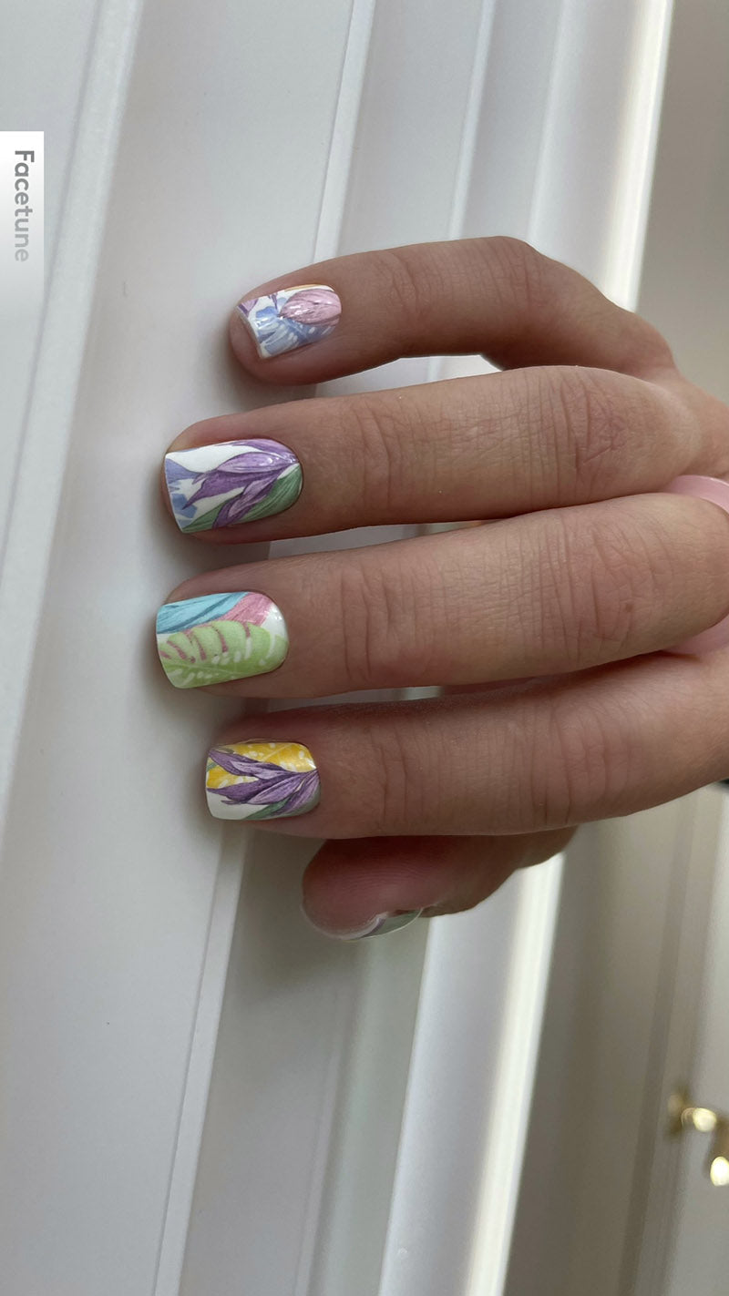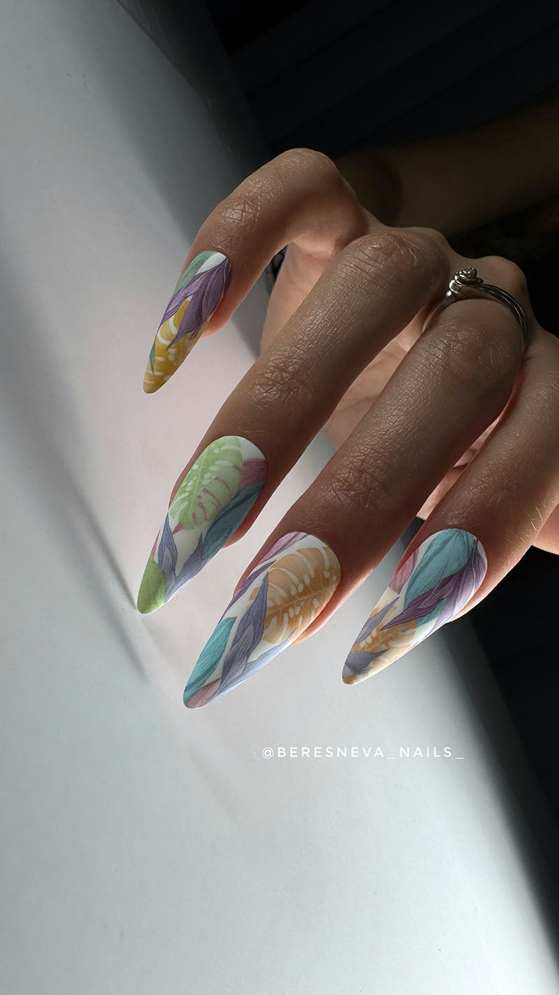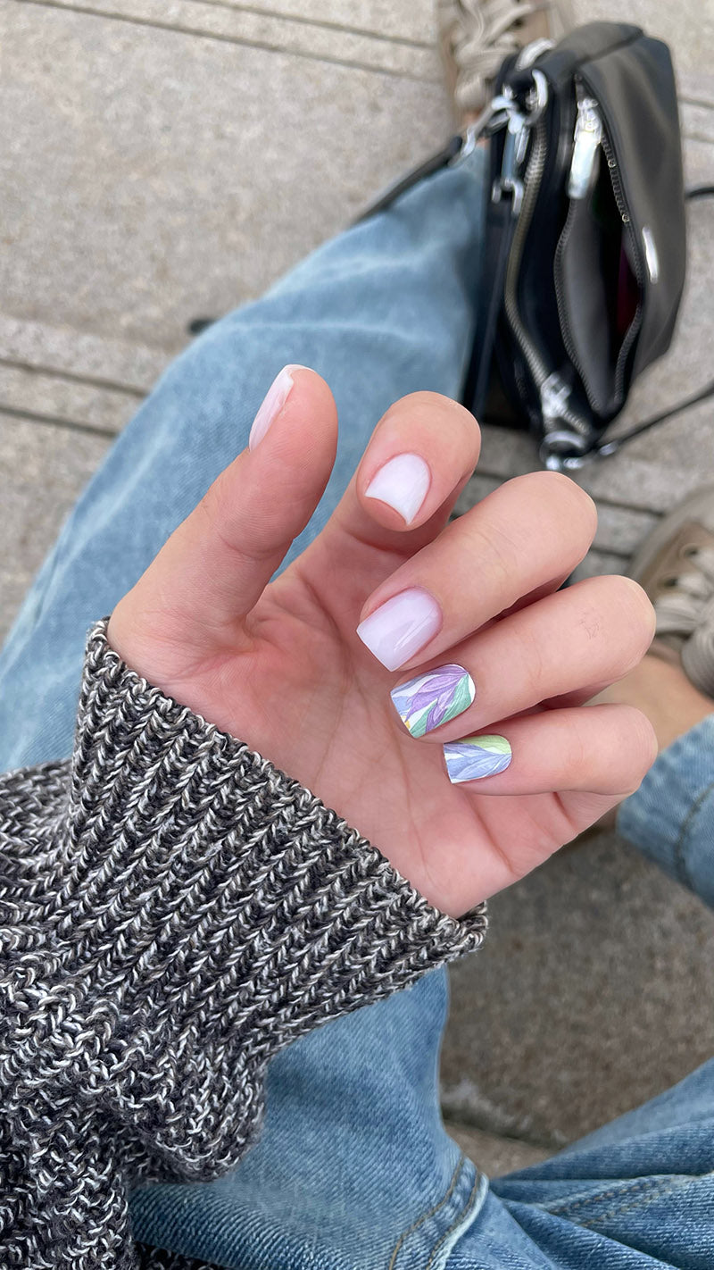 Manicure Large leaves. Pastel. Nail wrap WM-940