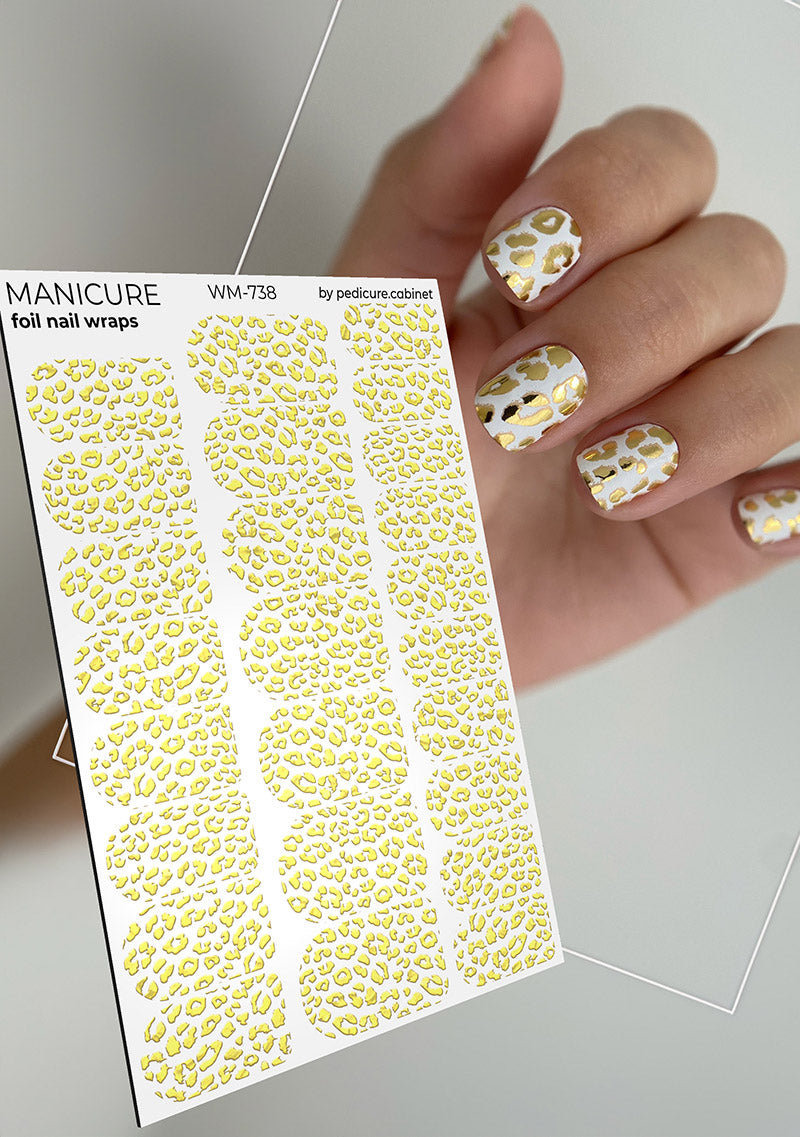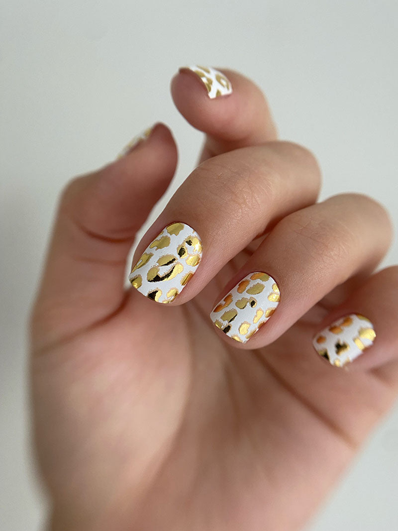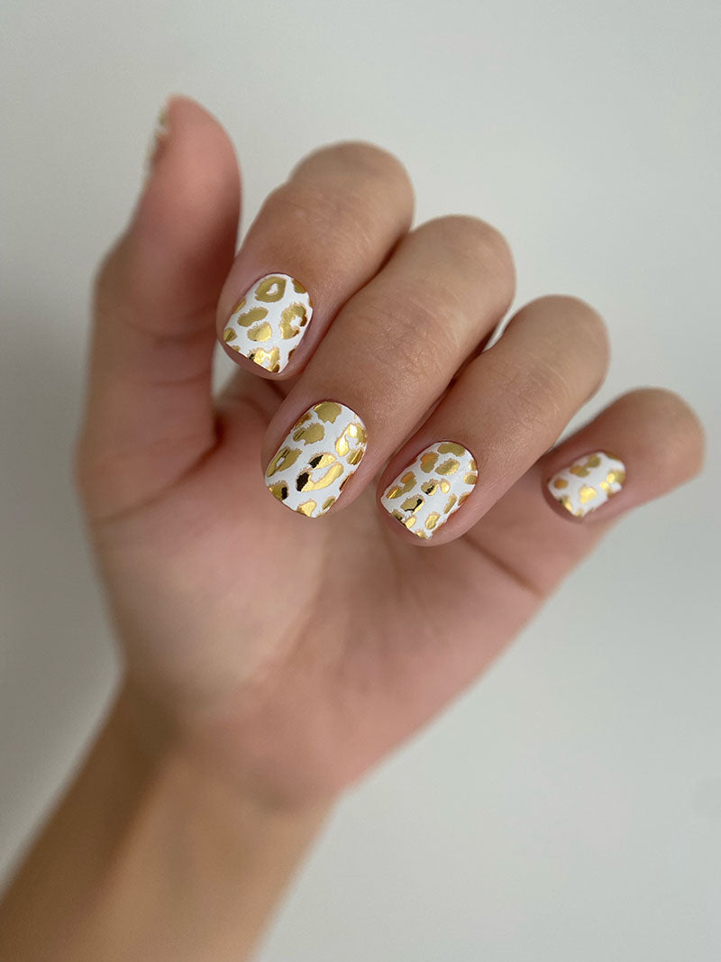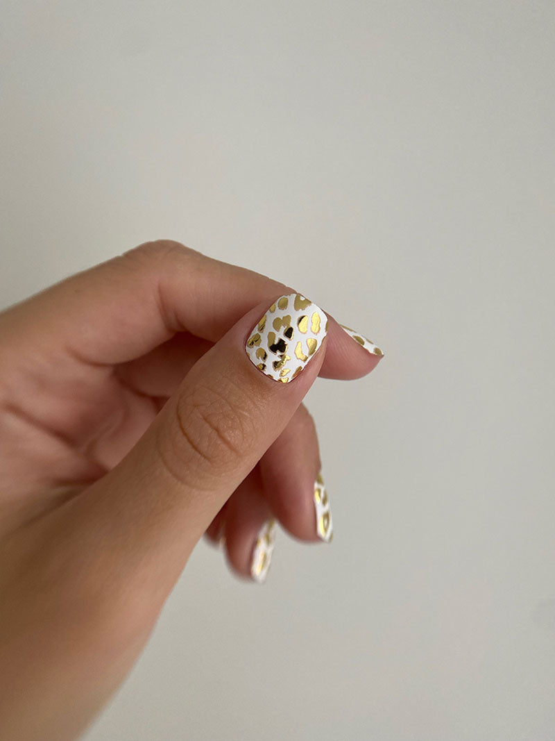 Manicure Leo. White Background. Gold Foil. Nail wrap WM-738