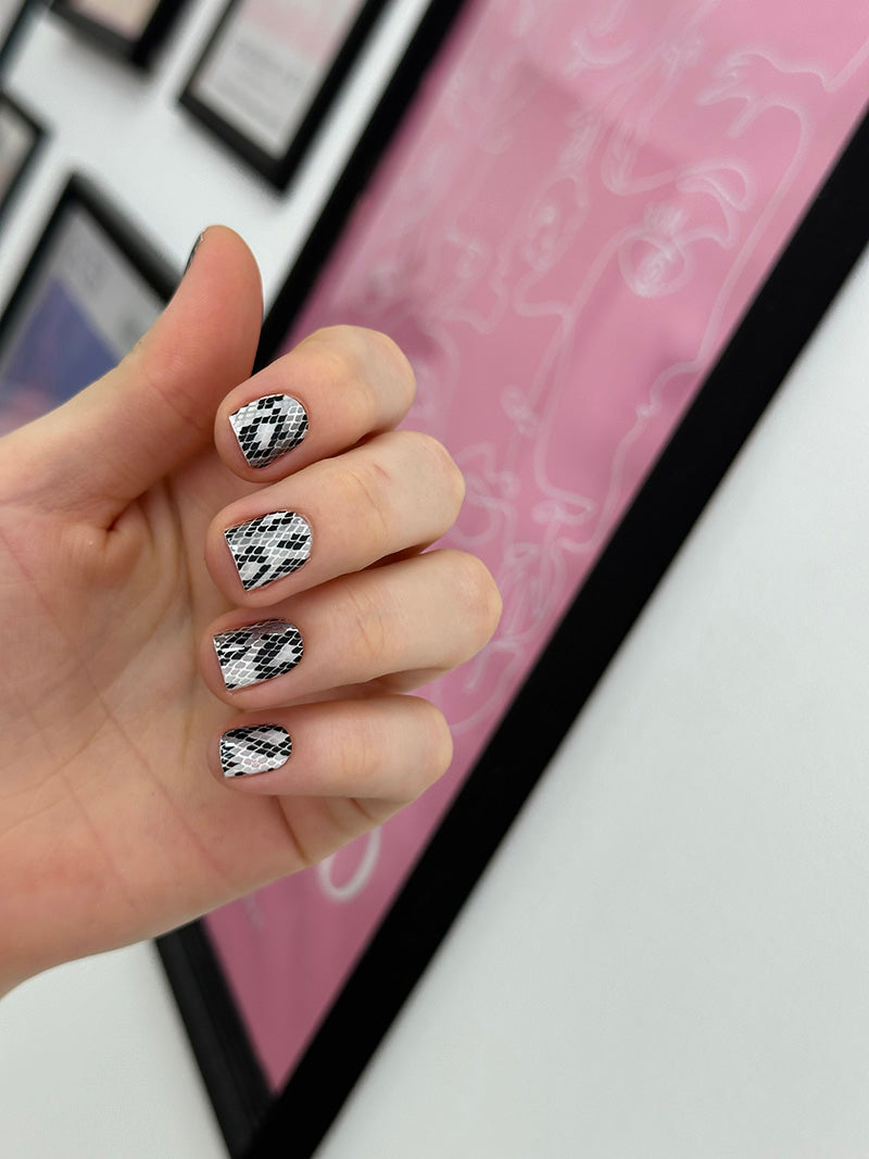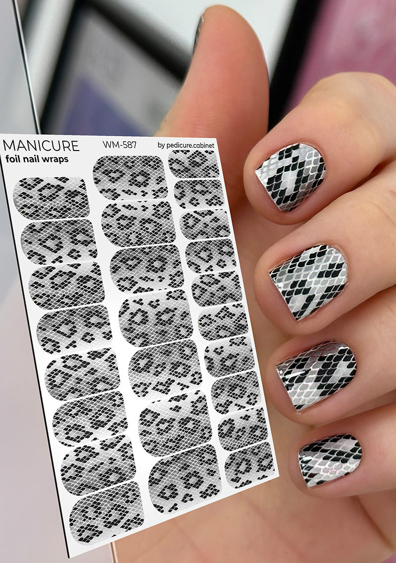 Manicure Python. Gray. Silver Foil. Nail wraps WM-587
