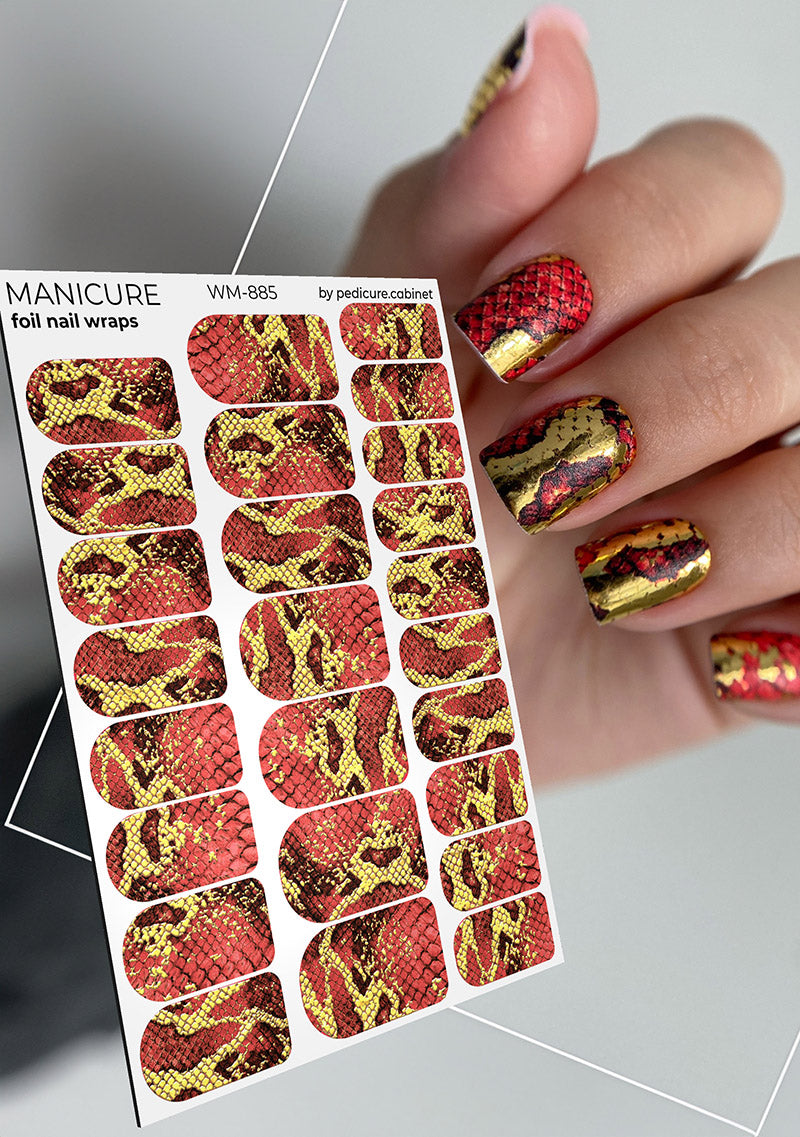 Manicure Python. Red. Foil gold. Nail wrap WM-885