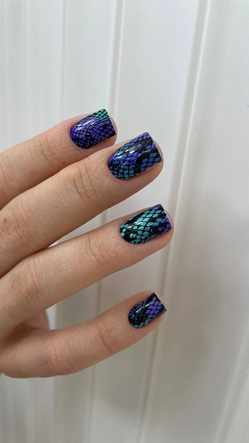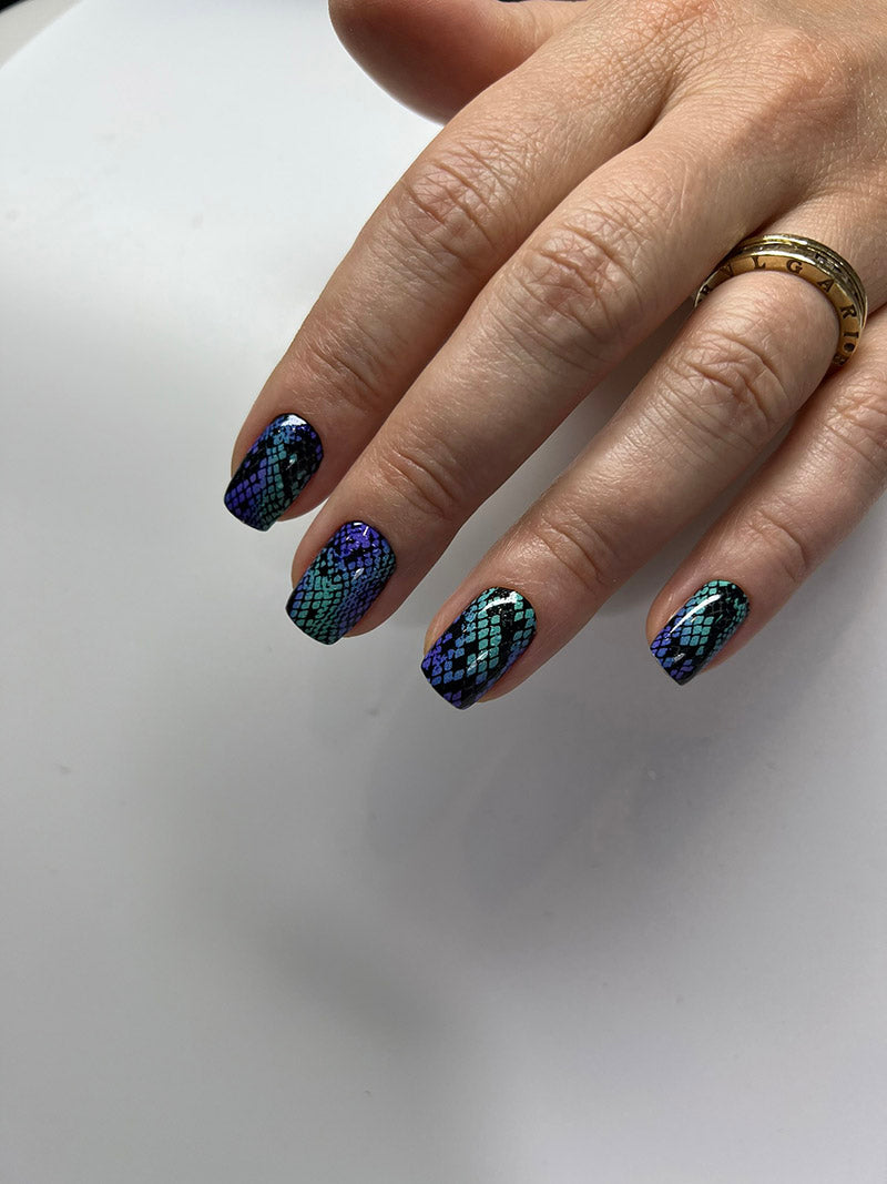 Manicure Reptile. Green purple. Nail wrap WM-888