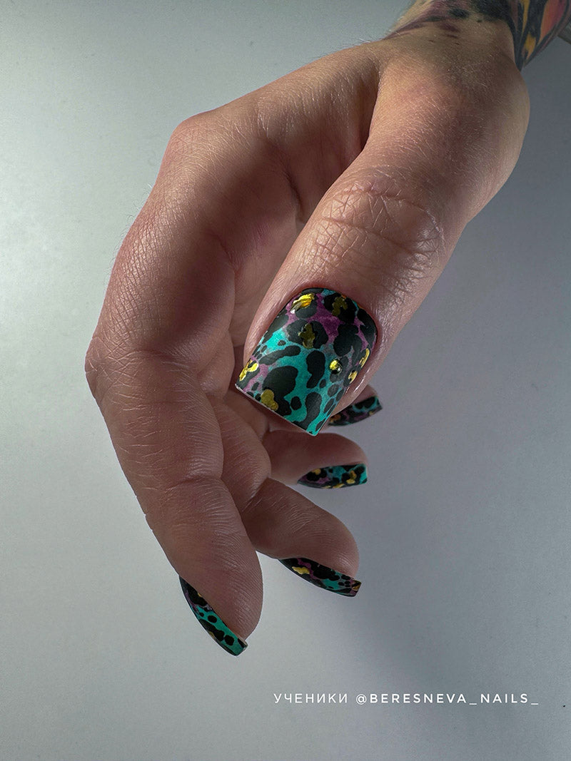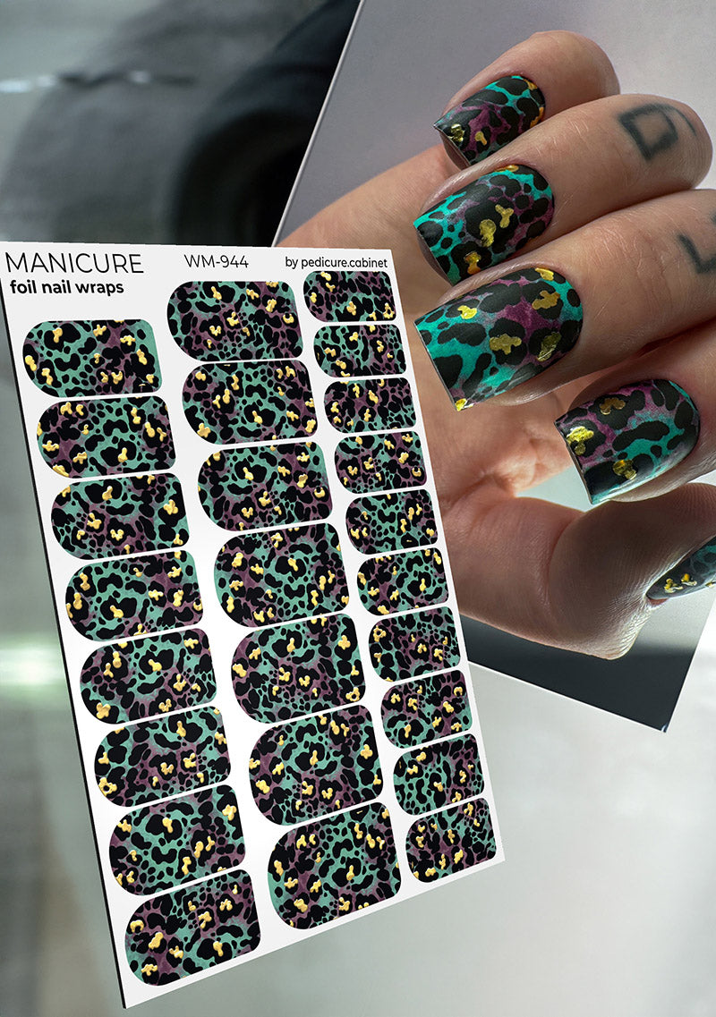 Manicure Stains. Dark green. Foil gold. Nail wrap WM-944